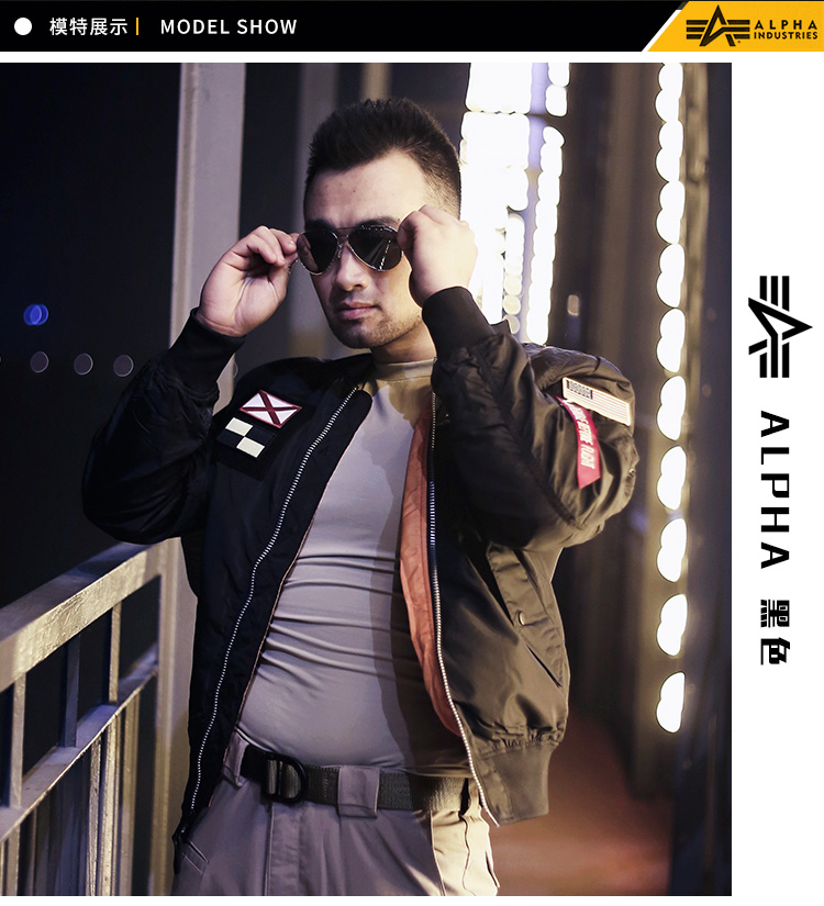 ALPHA INDUSTRIES 美国阿尔f法alpha立领FLEX带章防泼水ma1飞行夹克 弗雷斯