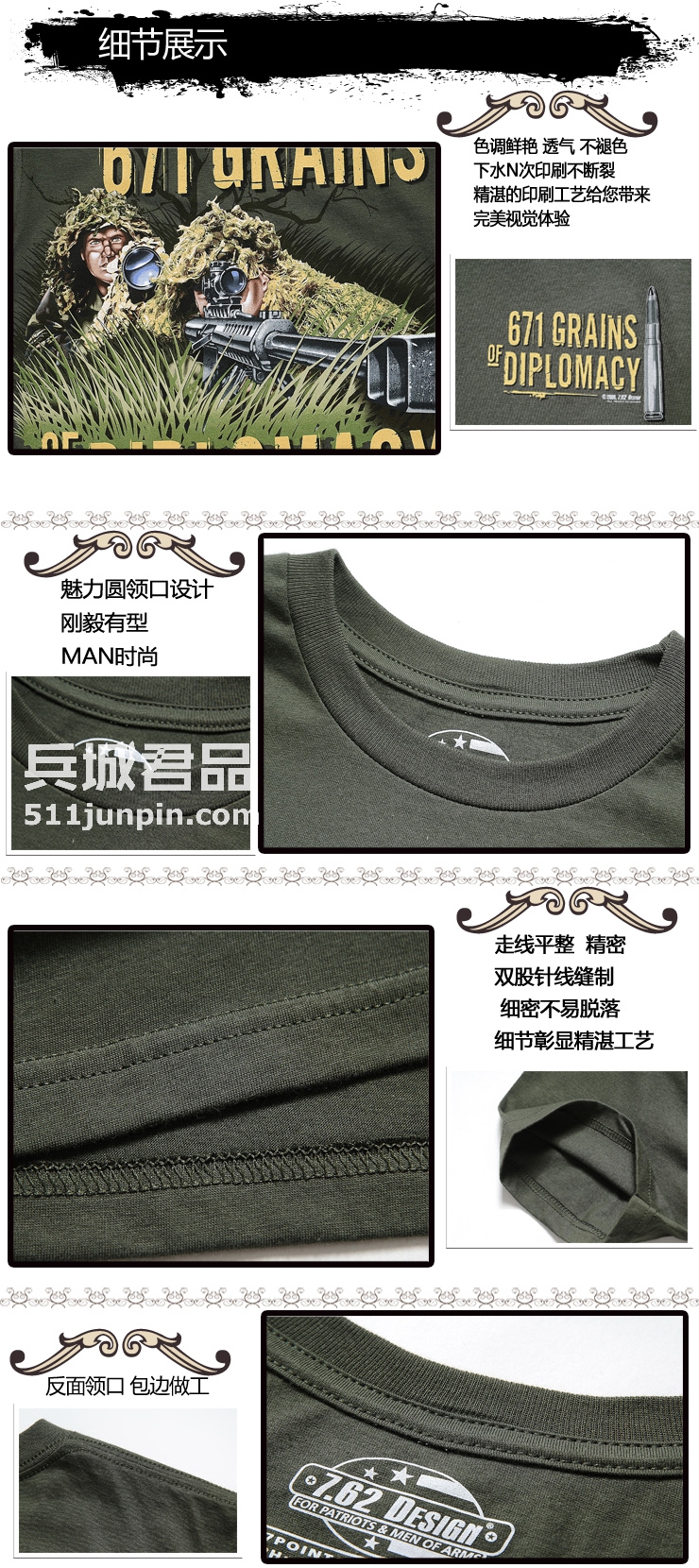 美国正品7.62design男士短袖t恤 个性印花户外军迷T恤衫 狙击1367